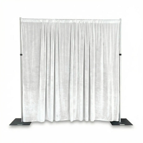 A stable, adjustable backdrop stand made for events, photography, and staging. This 3m x 3.6m frame kit features heavy-duty steel base plates, telescopic upright poles, and an adjustable crossbar—giving you versatility, quick setup, and a professional finish every time.