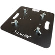 Titan AV truss base plates are hands down the best base plates available for lighting truss in the Australian Stage Production Industry. Laser cut 8mm steel plate covered in a hardwearing matt black powder coat with multiple positioning points located in the centre & centre side.