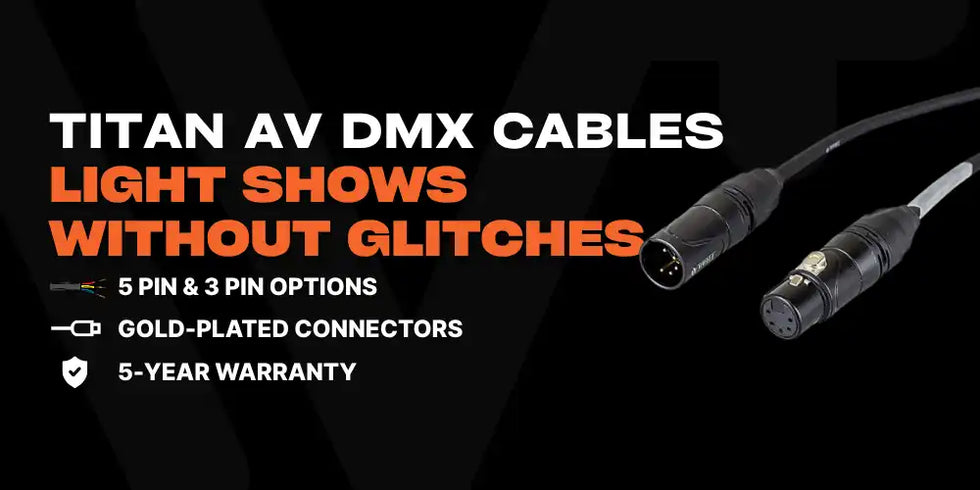 Titan AV 5 pin DMX offers true uncompromising signal quality with a matching impedance of 110 Ohms while giving you a helical/braided shielding for greater protection against signal interference. Titan AV 5 pin DMX are perfect for any production company, hire company, theatres, schools and permanent installation.