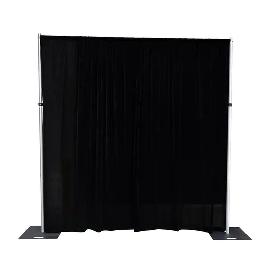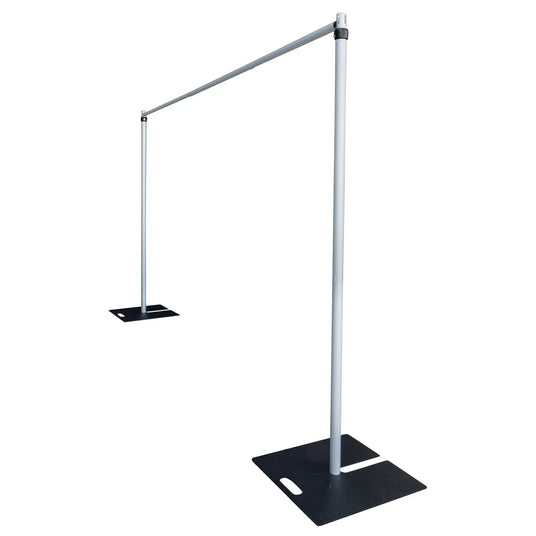 A stable, adjustable backdrop stand made for events, photography, and staging. This 3m x 3.6m frame kit features heavy-duty steel base plates, telescopic upright poles, and an adjustable crossbar—giving you versatility, quick setup, and a professional finish every time.