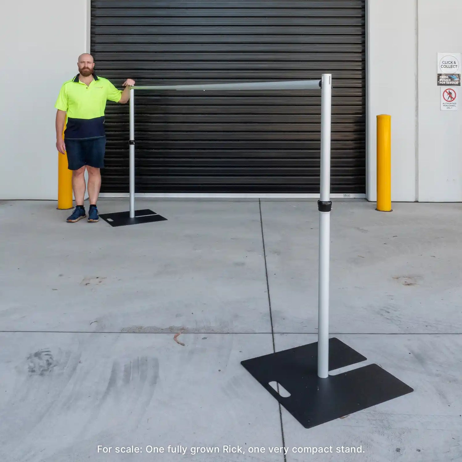 The heavy-duty steel base plates (600mm x 600mm) provide exceptional stability, featuring multiple mounting points so you can position the upright poles centrally or at the edge of the base, depending on your space requirements.