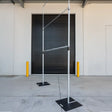 The heavy-duty steel base plates (600mm x 600mm) provide superior stability, featuring multiple mounting points, allowing you to position the poles centrally or at the edge of the base for optimal space use.