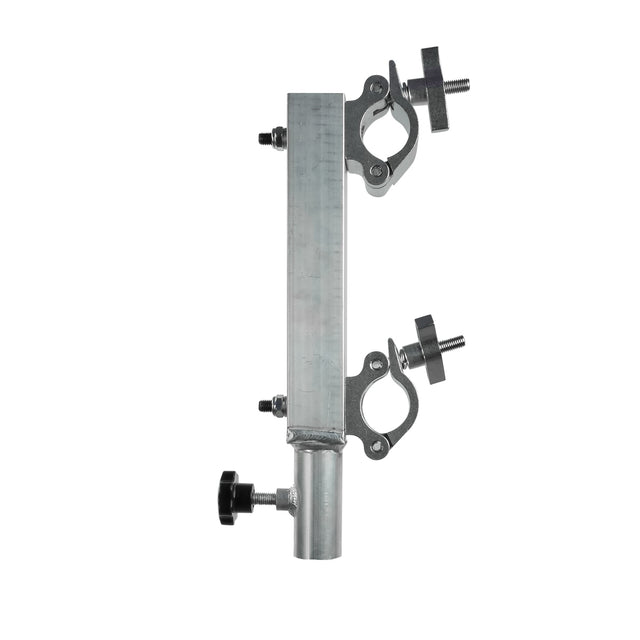 This truss adapter from Titan AV allows flat truss to be mounted upright to a 35mm pole commonly found on speaker stands and smaller winch ups. Made out aluminium, with two 50mm truss lighting clamps supplied and fitted, the Titan AV Flat Truss 35mm T-Bar Adapter Mount is designed to work with Titan AV 290mm Flat / ladder truss, also suitable for Global F32 truss.
