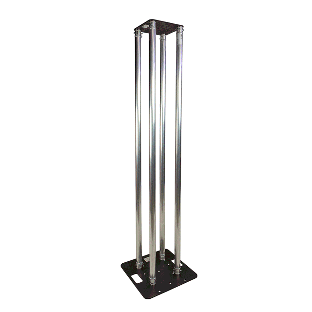 Glow totems require a small LED fixture to be placed at the base inbetween the four pole which is hidden away by the white scrim cover, this LED fixture lights up the totem. Titan AV Glow totems can also have a small moving head mounted to the top plate to double up as light stand.